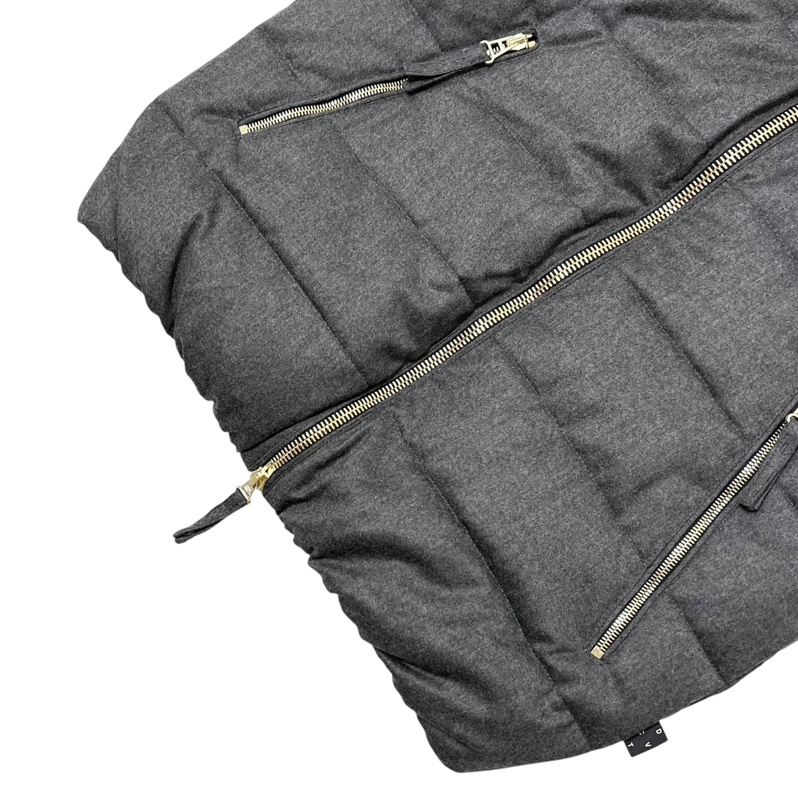 フロントのシャンパンゴールドファスナーをキーアクセントに、DUVETICAの老舗ダウン工場にて細やかなブロックキルトを加えた。
