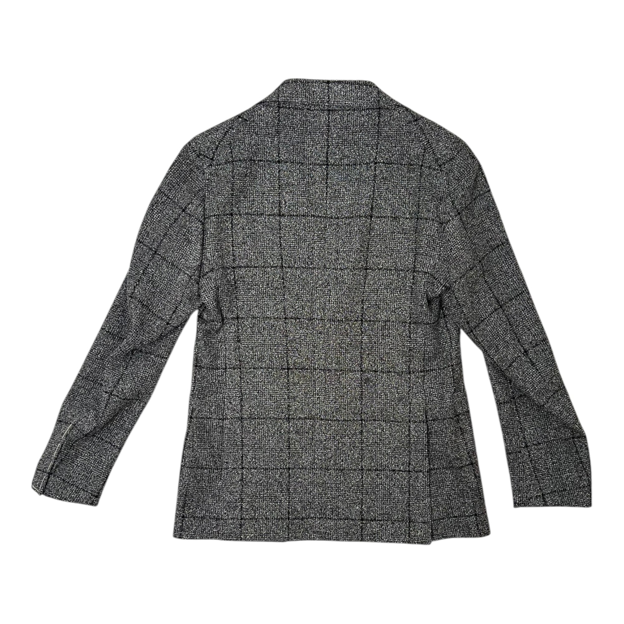 ディテールは、2つボタン、ノッチドドラペル、バルカポケット、2パッチポケット、サイドベンツ、袖口アンフィニッシュとなります。