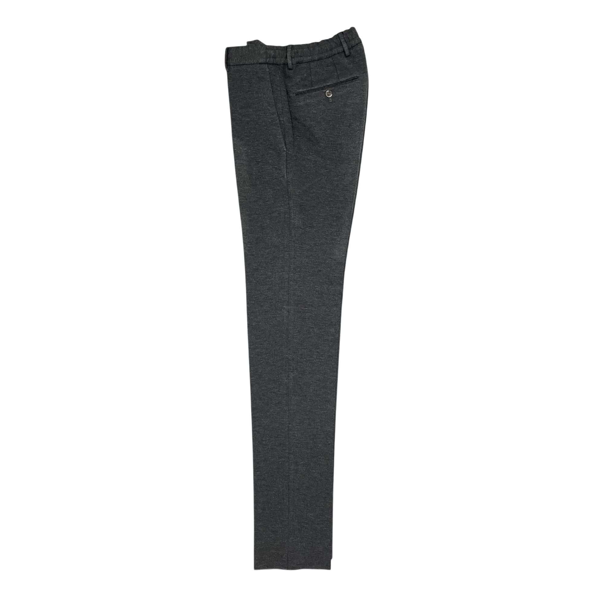 ストレッチ性の高いジャージー素材でありながら綺麗めなウールパンツのように見える上品な質感。