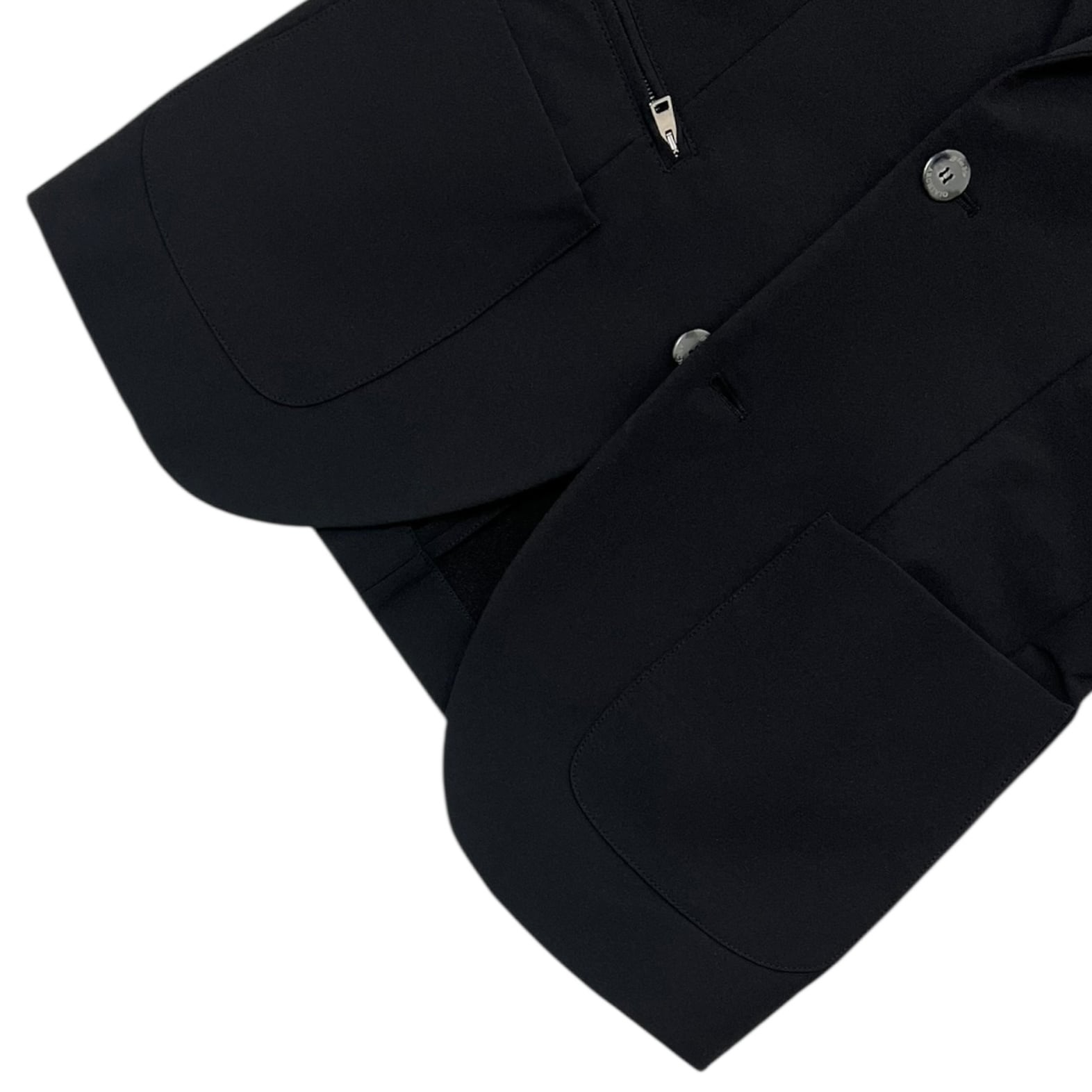 2つ釦、バルカポケット、パッチポケット、サイドベンツ仕様。