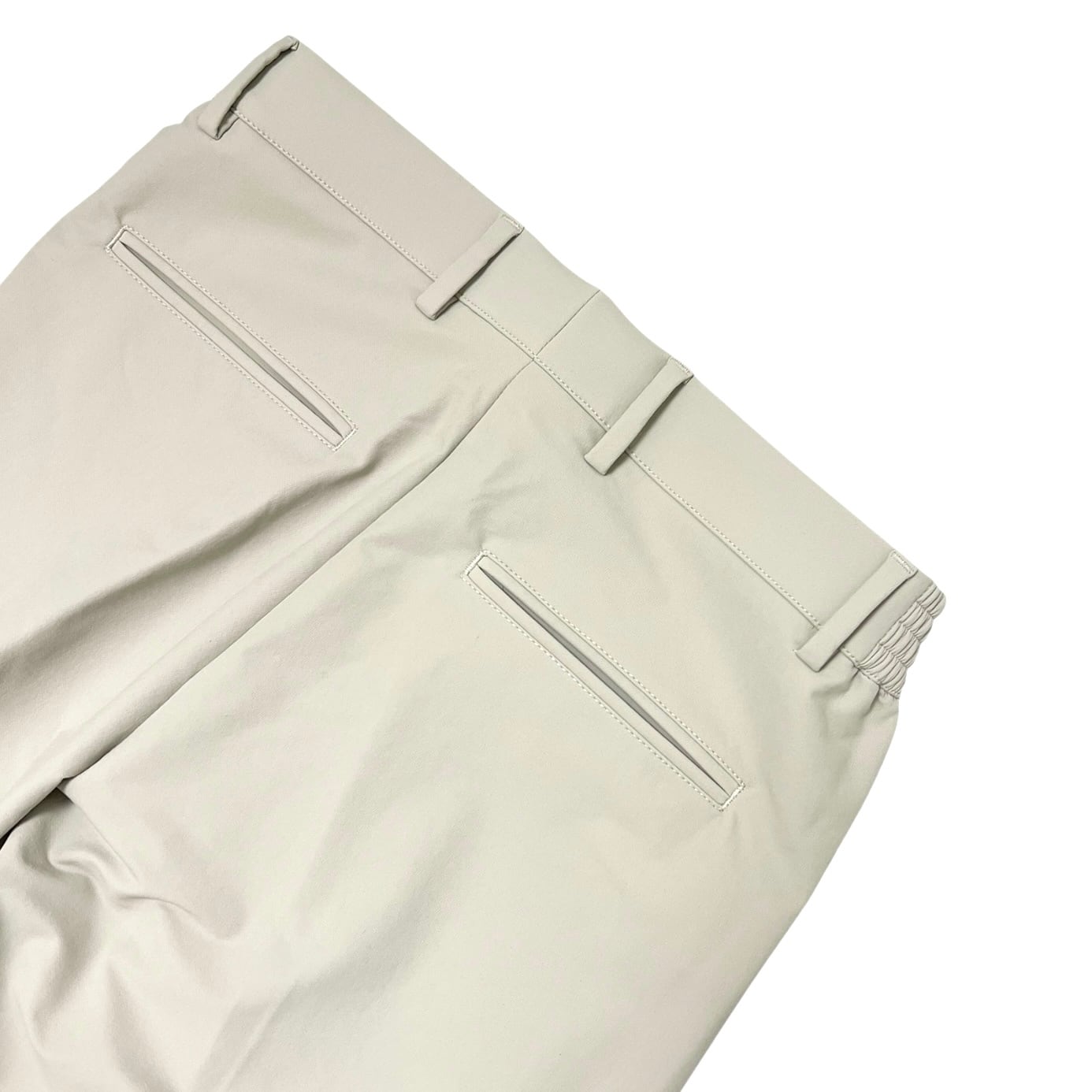 縦横ストレッチがあり、見た目はすっきりとした生地感ながらも、裏起毛のような膨らみを持つテクニカルなコンフォートファブリック。