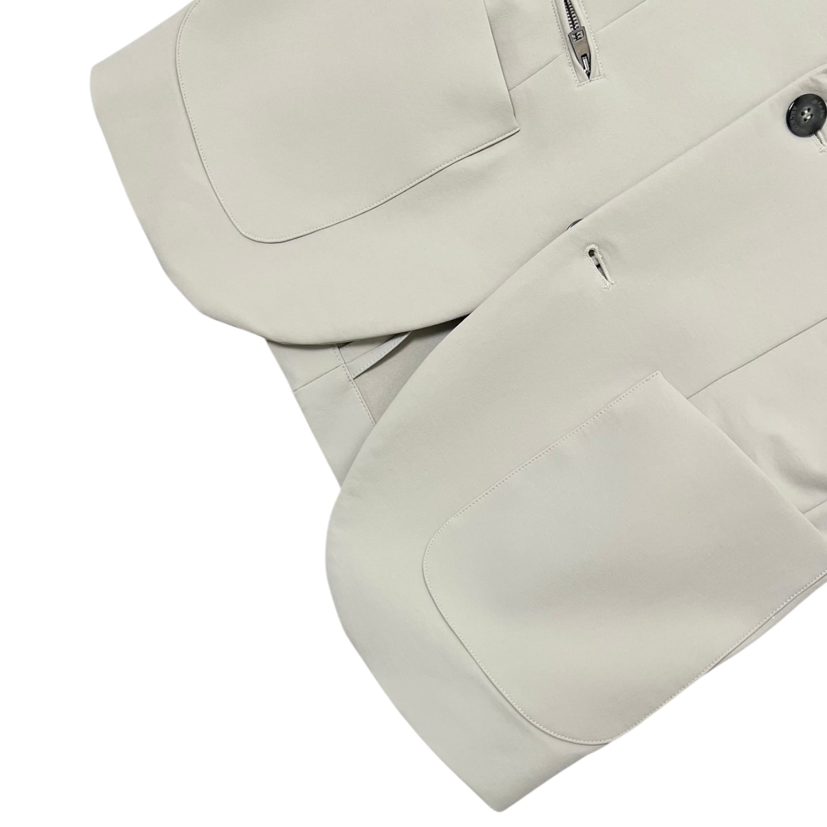 2つ釦、バルカポケット、パッチポケット、サイドベンツ仕様。