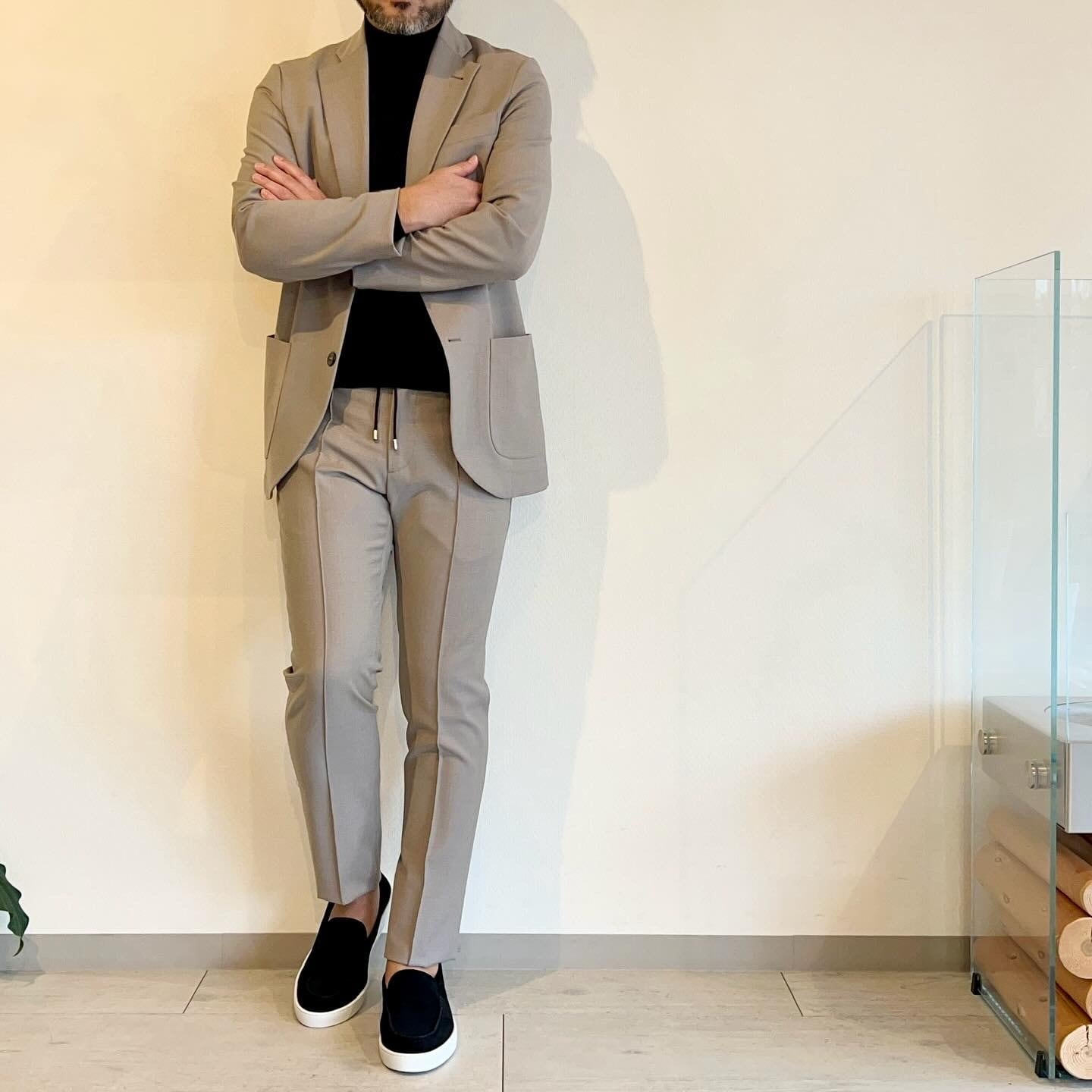 こちらのモデルは同素材(A6426-12)のジャケットとセットアップとして着用いただけます。