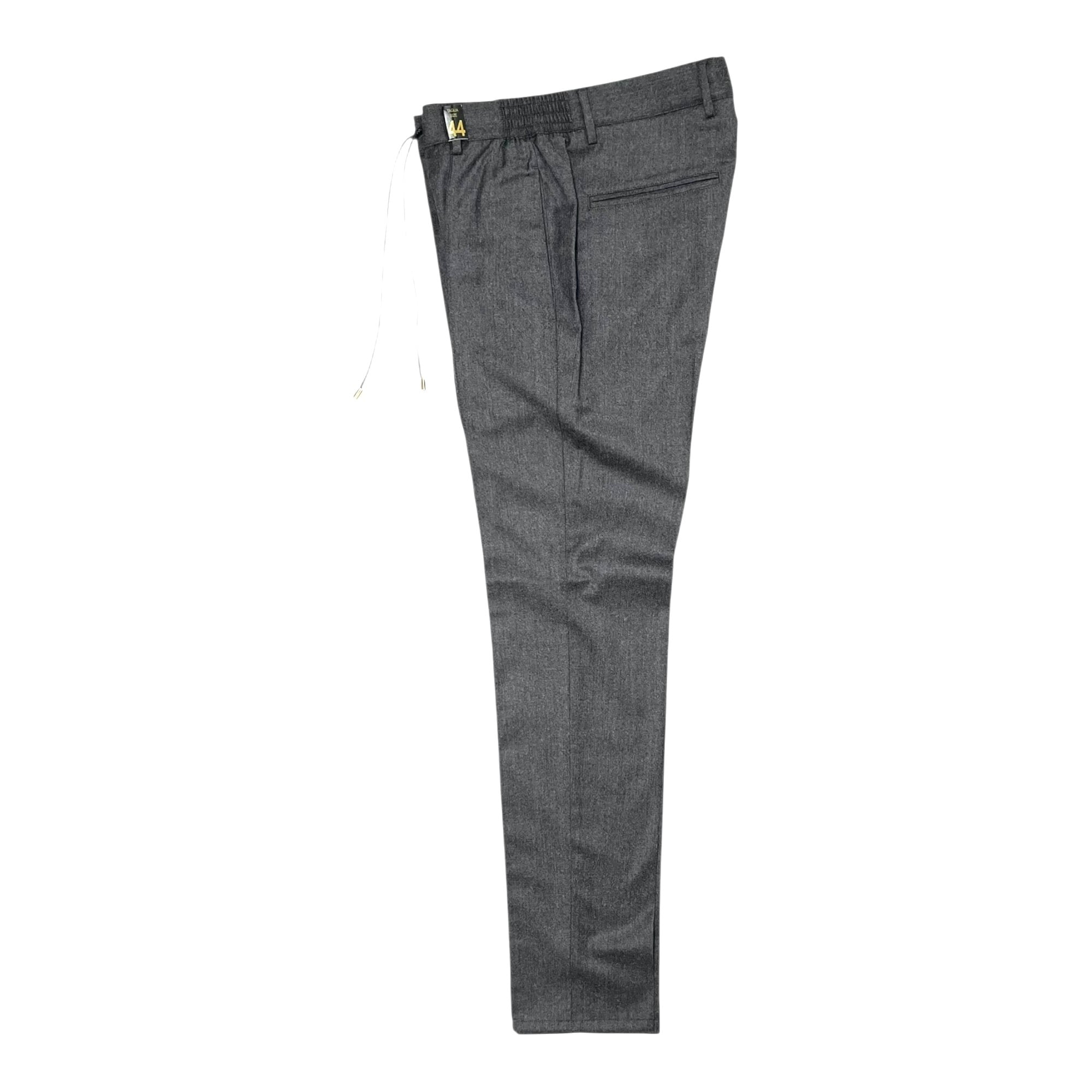 ゴールドパーツがアクセントとなったウエストドローコード、両サイドのゴムシャーリングによる快適な穿き心地、脚を綺麗に見せるジャブスアルキヴィオならではの細身のシルエット、革靴、スニーカーのどちらにもフィットするユーティリティーリラックストラウザーズ。脚長効果のあるひざ上からのテーパードシルエットが魅力。