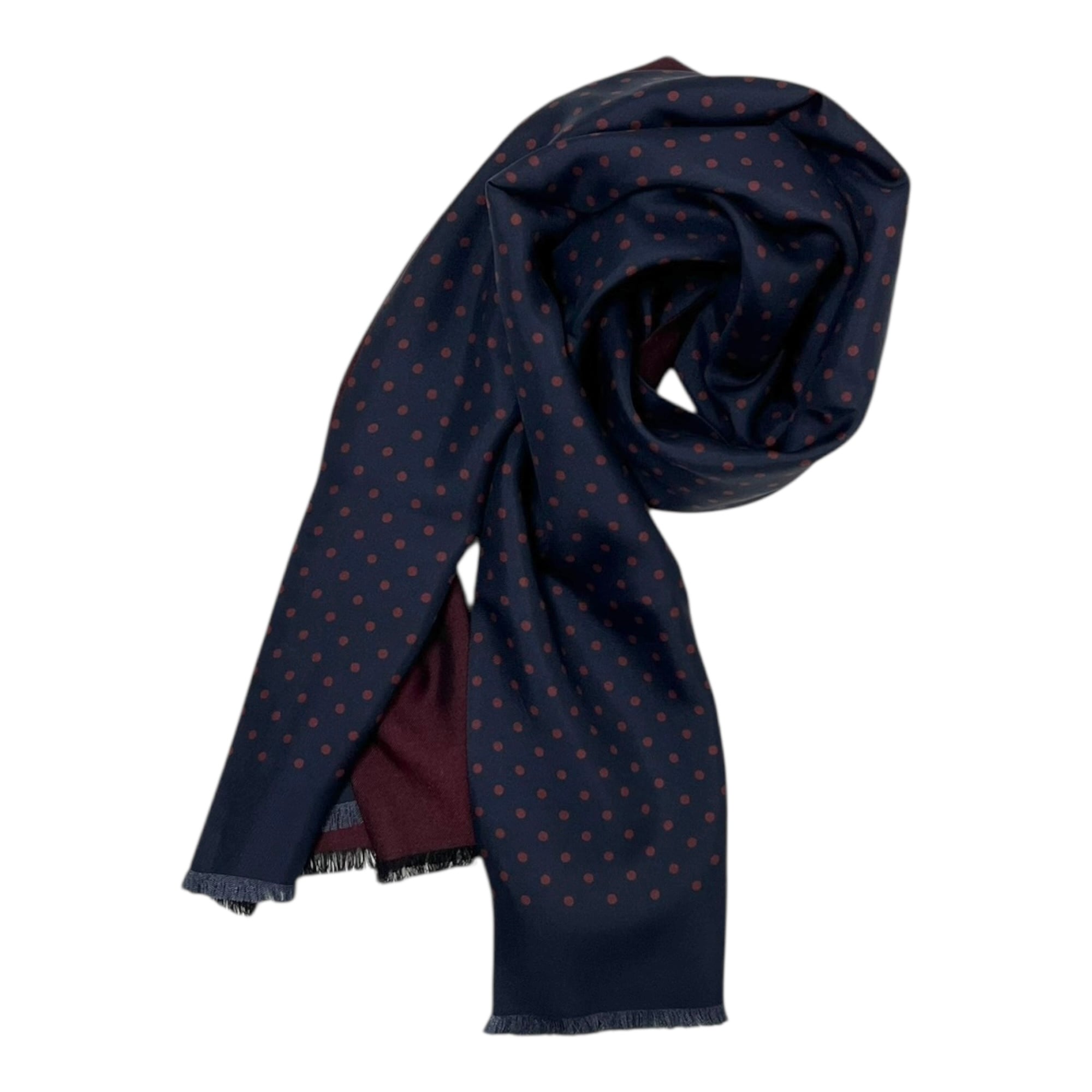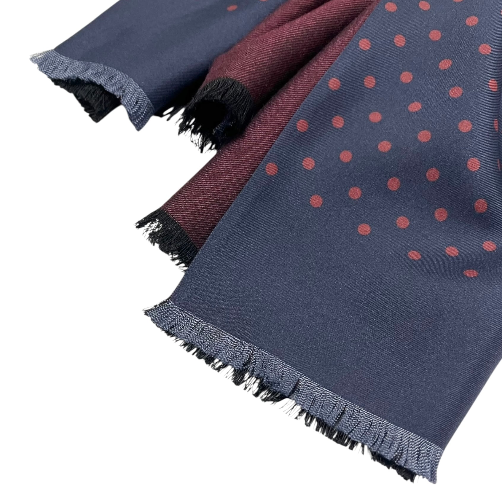 プリント面は上質なシルク素材100%で、ソリッド面は柔らかな肌触りが魅力のウール・カシミヤ・シルク素材を使用しています。