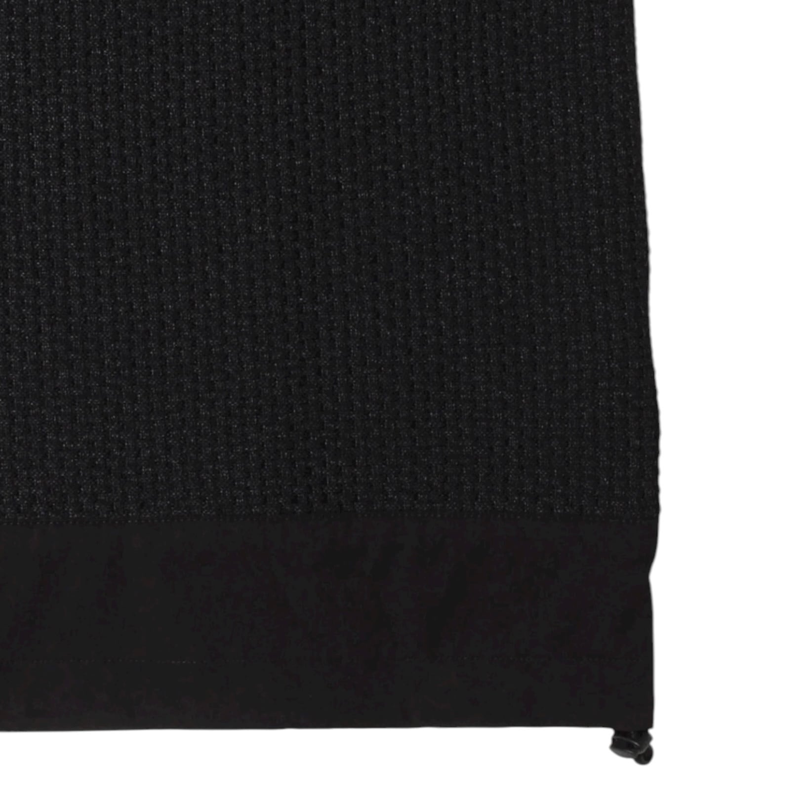袖先は編み方を切り替えることでシンプルながらも印象的に仕上げ、裾には別生地とドローコードを採用。シルエットや着丈のアレンジが自在です。