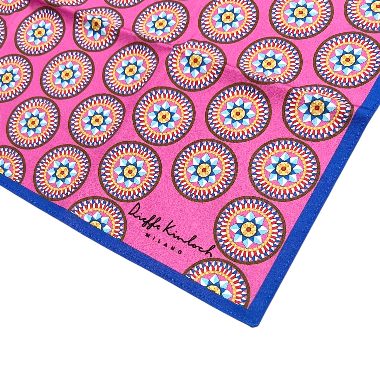 スカーフ一枚を広げるだけで、あたかもその場の雰囲気や、旅をしているような感覚を得られます。地中海の潮の香りが漂ってきそうなサンゴ、シチリアの庭園に住む動物たち、視覚と嗅覚から感じた、独特なイメージで描かれたベネチア。イタリアだけでなく、アジアやアラブなど世界各地の様々な風景や文化もデザインされ、キンロックの思いやフィロソフィーである、喜びや美 しさが存分に込められています。