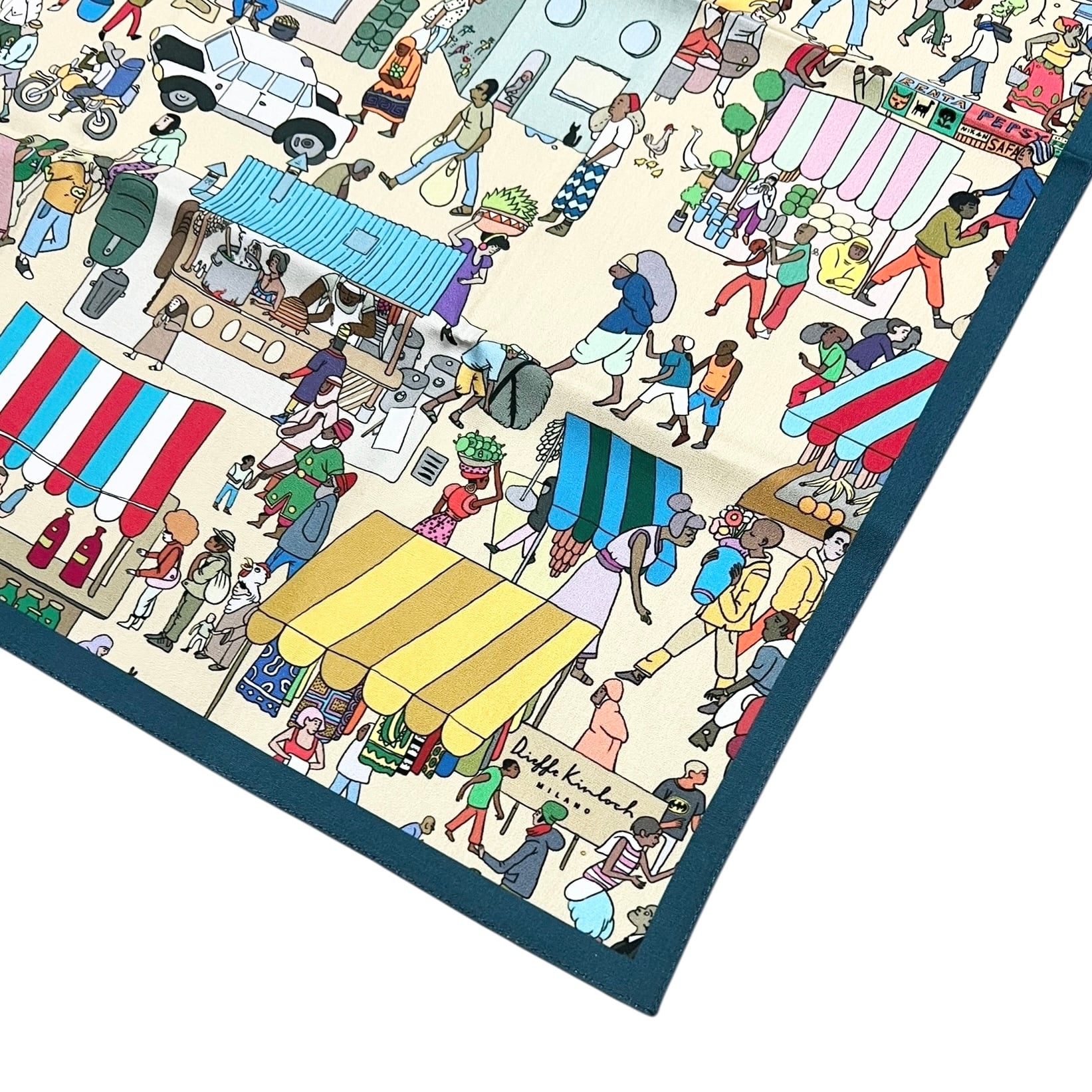 スカーフ一枚を広げるだけで、あたかもその場の雰囲気や、旅をしているような感覚を得られます。地中海の潮の香りが漂ってきそうなサンゴ、シチリアの庭園に住む動物たち、視覚と嗅覚から感じた、独特なイメージで描かれたベネチア。イタリアだけでなく、アジアやアラブなど世界各地の様々な風景や文化もデザインされ、キンロックの思いやフィロソフィーである、喜びや美 しさが存分に込められています。