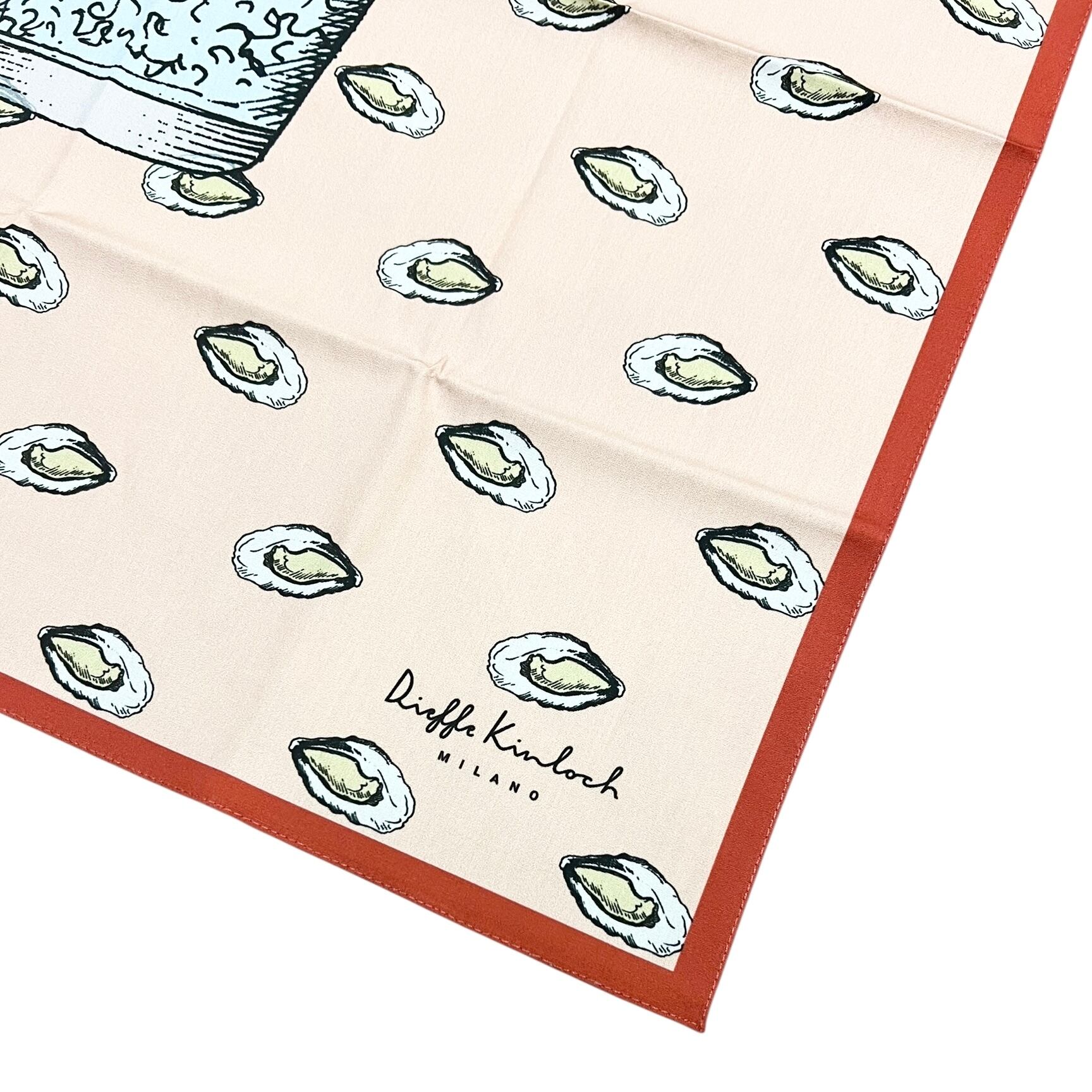 スカーフ一枚を広げるだけで、あたかもその場の雰囲気や、旅をしているような感覚を得られます。地中海の潮の香りが漂ってきそうなサンゴ、シチリアの庭園に住む動物たち、視覚と嗅覚から感じた、独特なイメージで描かれたベネチア。イタリアだけでなく、アジアやアラブなど世界各地の様々な風景や文化もデザインされ、キンロックの思いやフィロソフィーである、喜びや美 しさが存分に込められています。