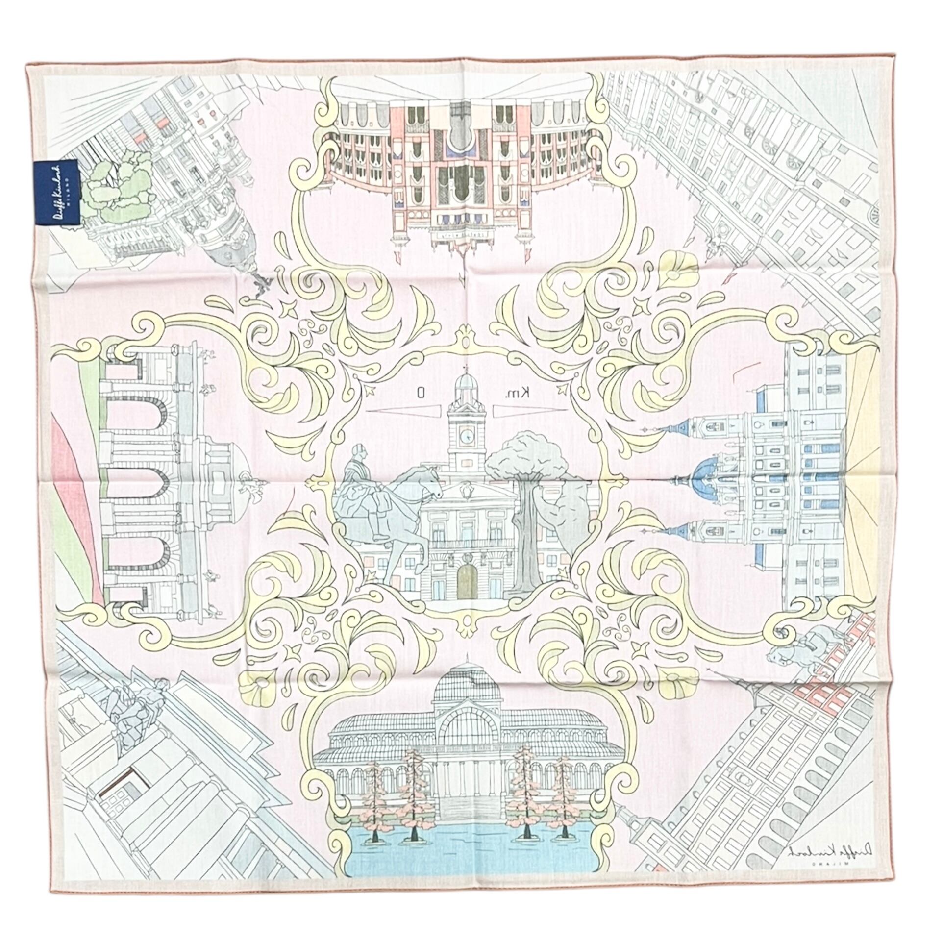 スカーフ一枚を広げるだけで、あたかもその場の雰囲気や、旅をしているような感覚を得られます。地中海の潮の香りが漂ってきそうなサンゴ、シチリアの庭園に住む動物たち、視覚と嗅覚から感じた、独特なイメージで描かれたベネチア。イタリアだけでなく、アジアやアラブなど世界各地の様々な風景や文化もデザインされ、キンロックの思いやフィロソフィーである、喜びや美 しさが存分に込められています。