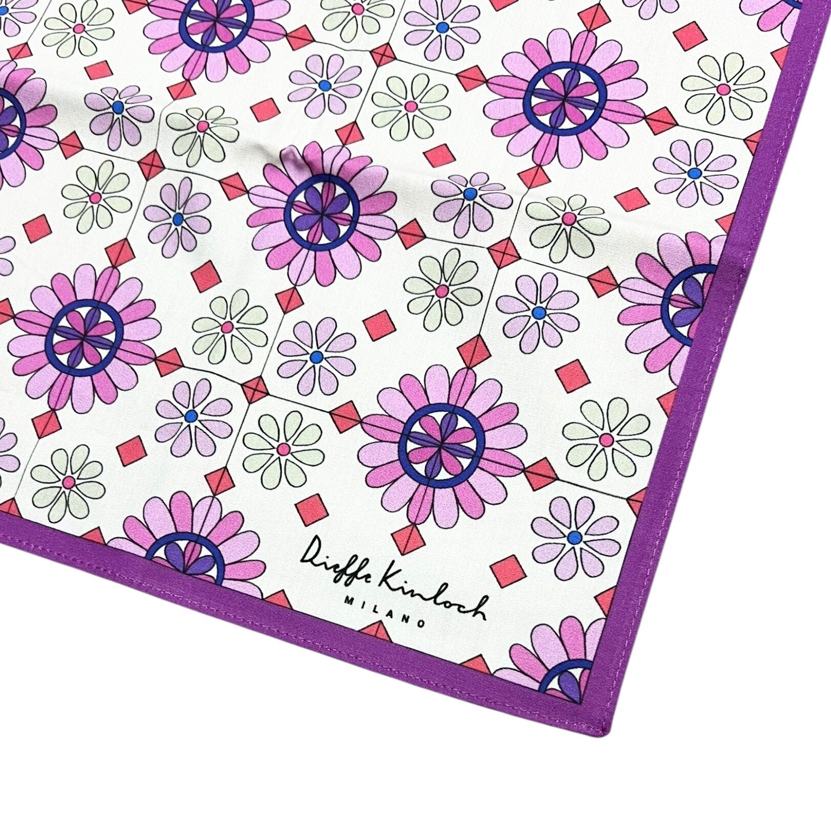 スカーフ一枚を広げるだけで、あたかもその場の雰囲気や、旅をしているような感覚を得られます。地中海の潮の香りが漂ってきそうなサンゴ、シチリアの庭園に住む動物たち、視覚と嗅覚から感じた、独特なイメージで描かれたベネチア。イタリアだけでなく、アジアやアラブなど世界各地の様々な風景や文化もデザインされ、キンロックの思いやフィロソフィーである、喜びや美 しさが存分に込められています。