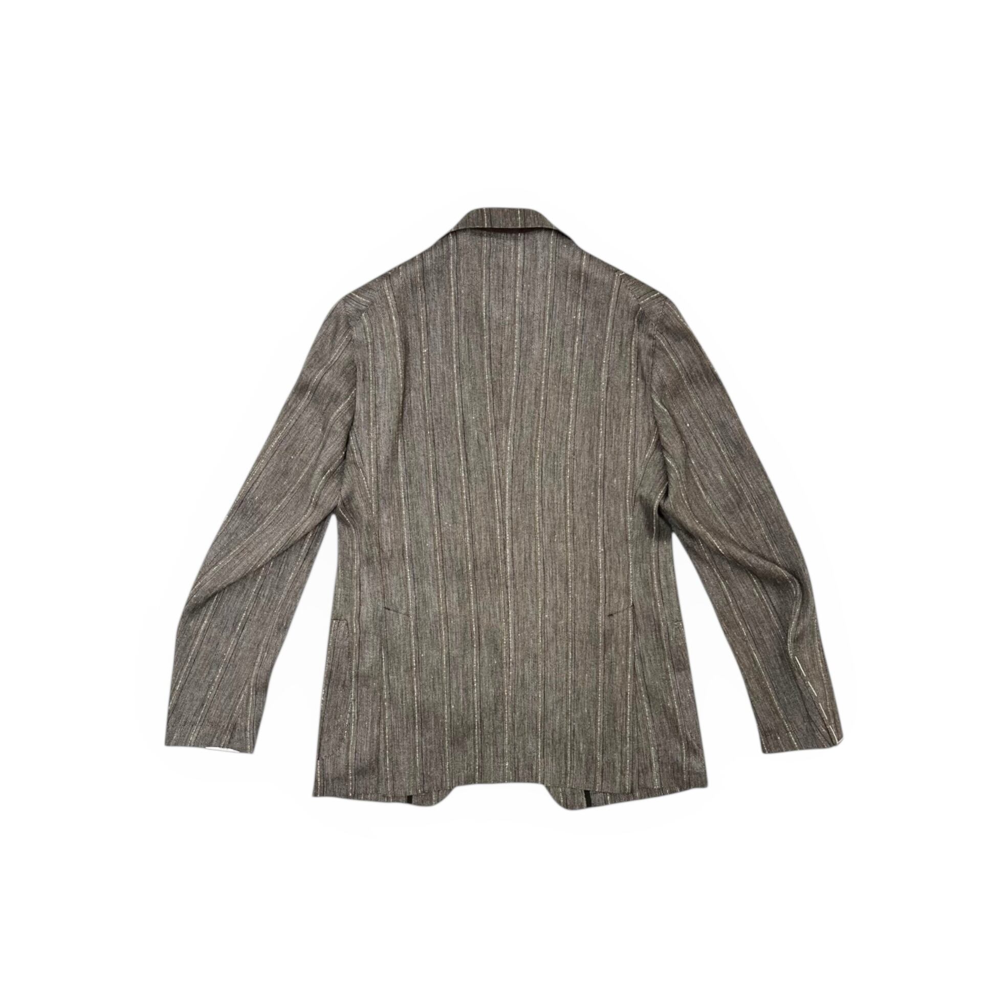 リネンがベースの清涼感のある生地にオルタネイトストライプ柄がリュックスな大人のジャケットに仕上がっております。