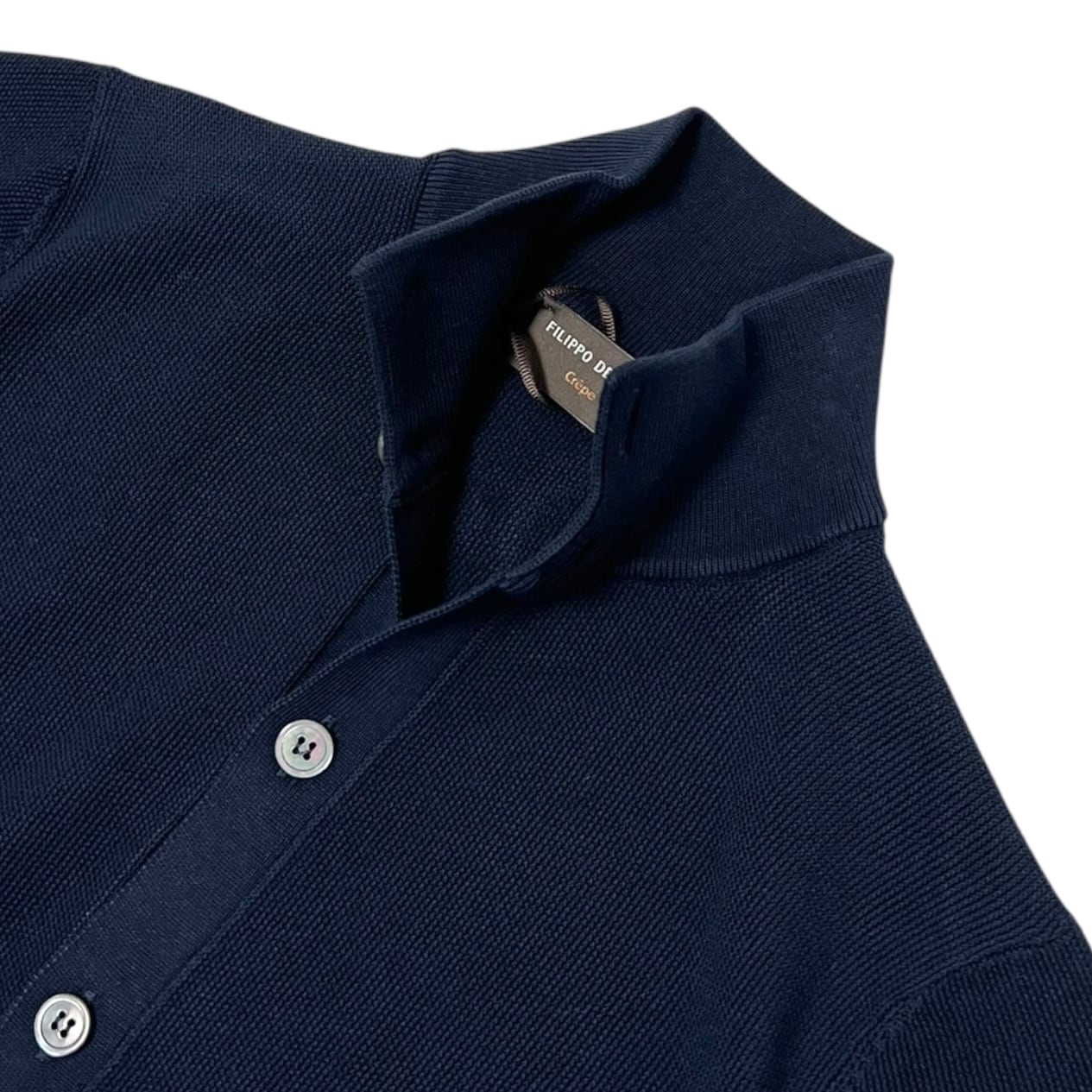 FILIPPO DE LAURENTIIS(フィリッポ デ ローレンティス)standing collar crepe cotton knit cardigan/NAVY(890)