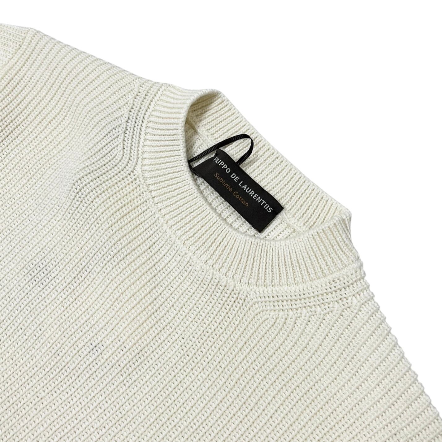 FILIPPO DE LAURENTIIS(フィリッポ デ ローレンティス) 7Gauge Cotton Crew Neck Rib Knit(GC1ML58) /WHITE(020)