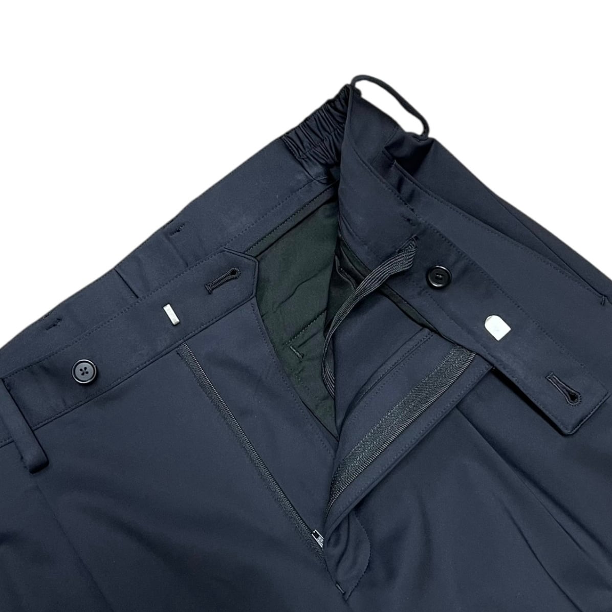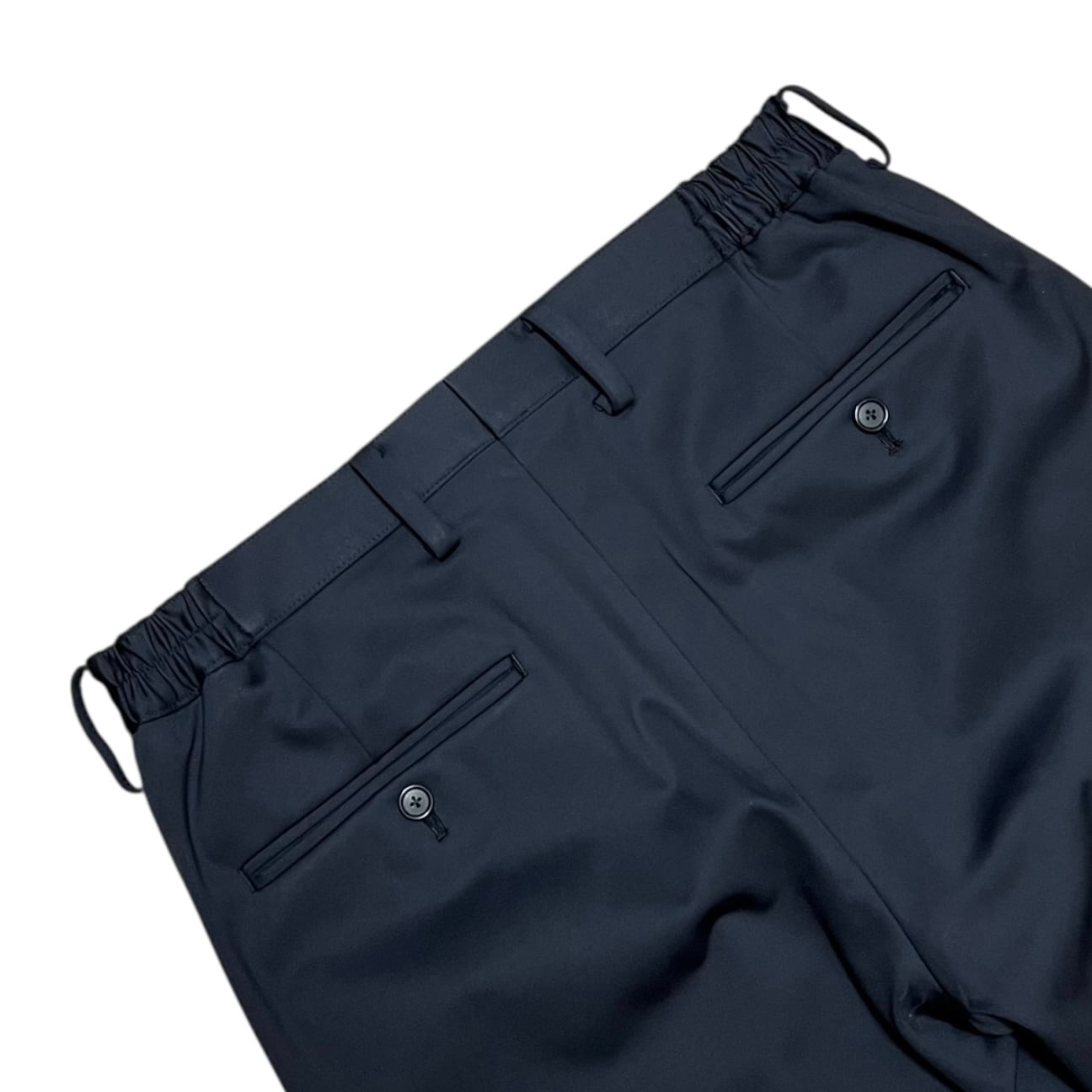 ウエストサイズのお直しも可能な構造、股ズレや縫い目のほつれを防ぐシックなど、クラシックパンツの勘所が盛り込まれています。