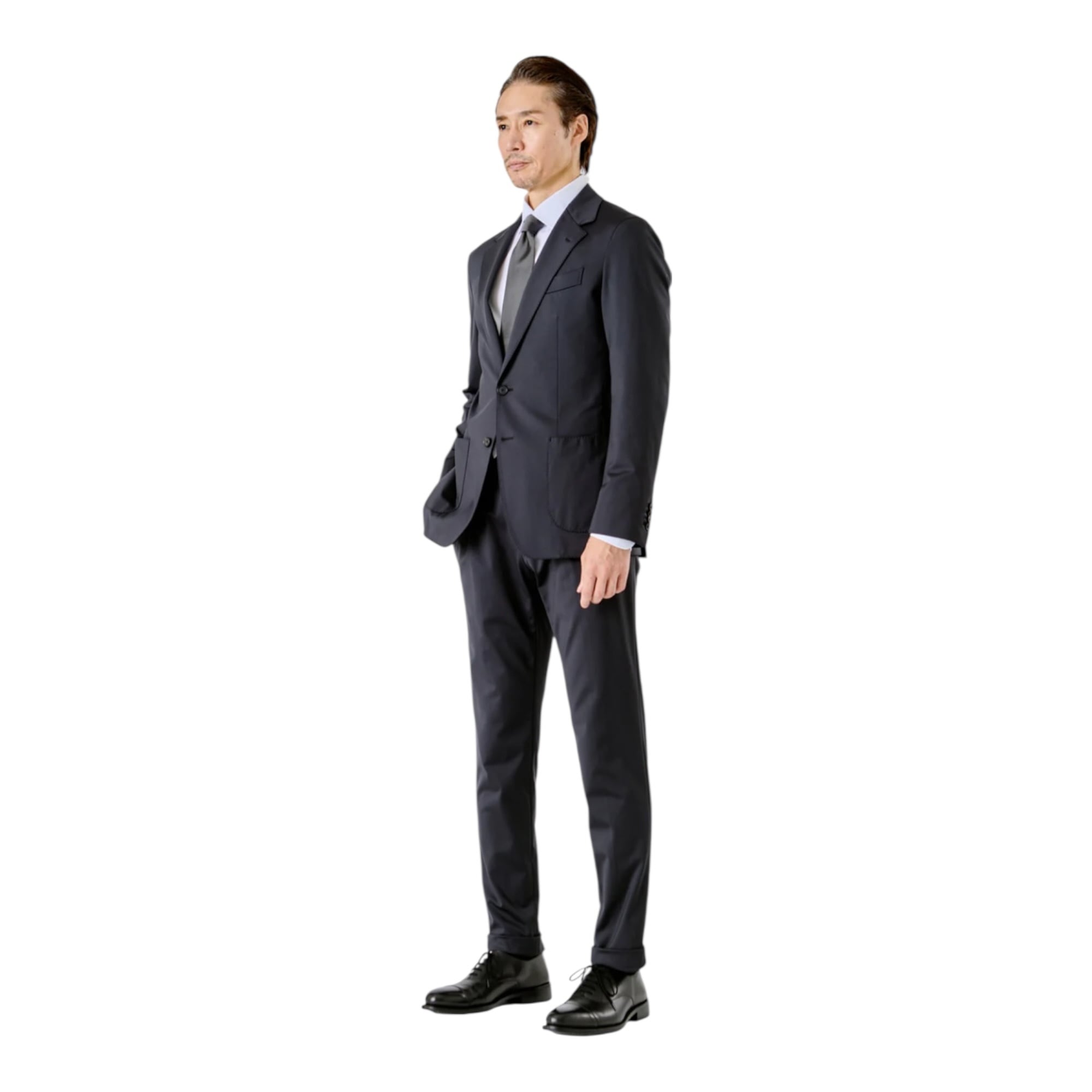 飽きのこない形状の衿や優雅なサイドベンツなど、長く愛用していただける王道のディテールを取り入れつつ、生地の特性や多忙なビジネスパーソンの生活形態を考慮に入れた独自のパターン設計。