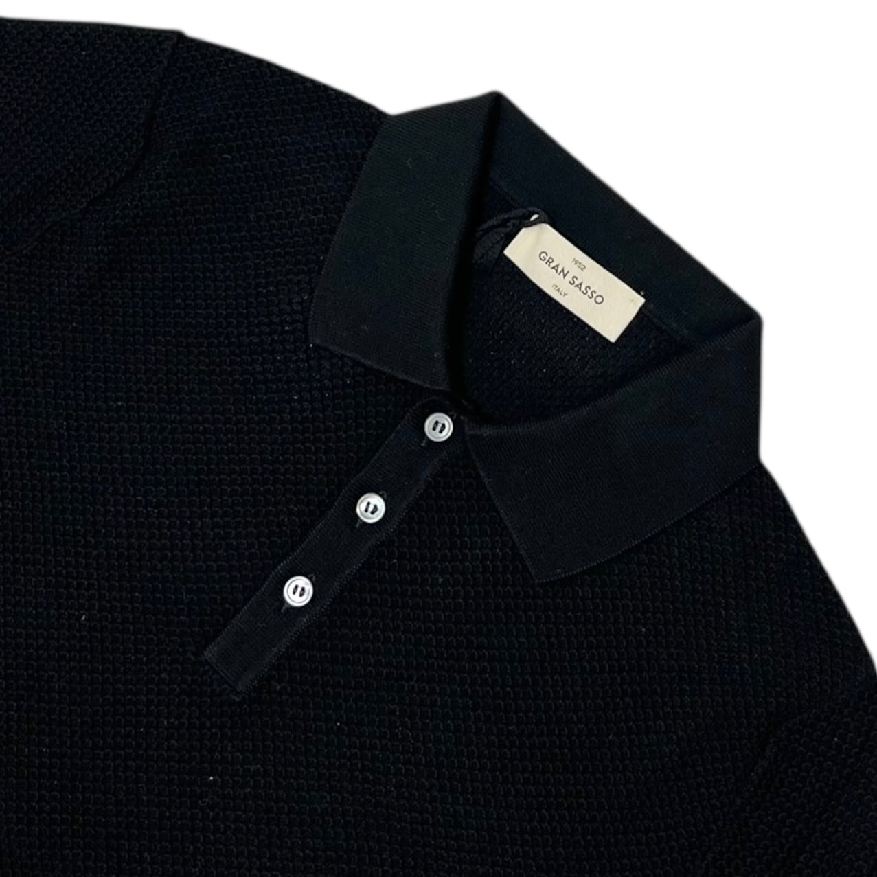 GranSasso(グランサッソ) Jacquard Cotton Knit Polo(57113/18028/099)/BLACK