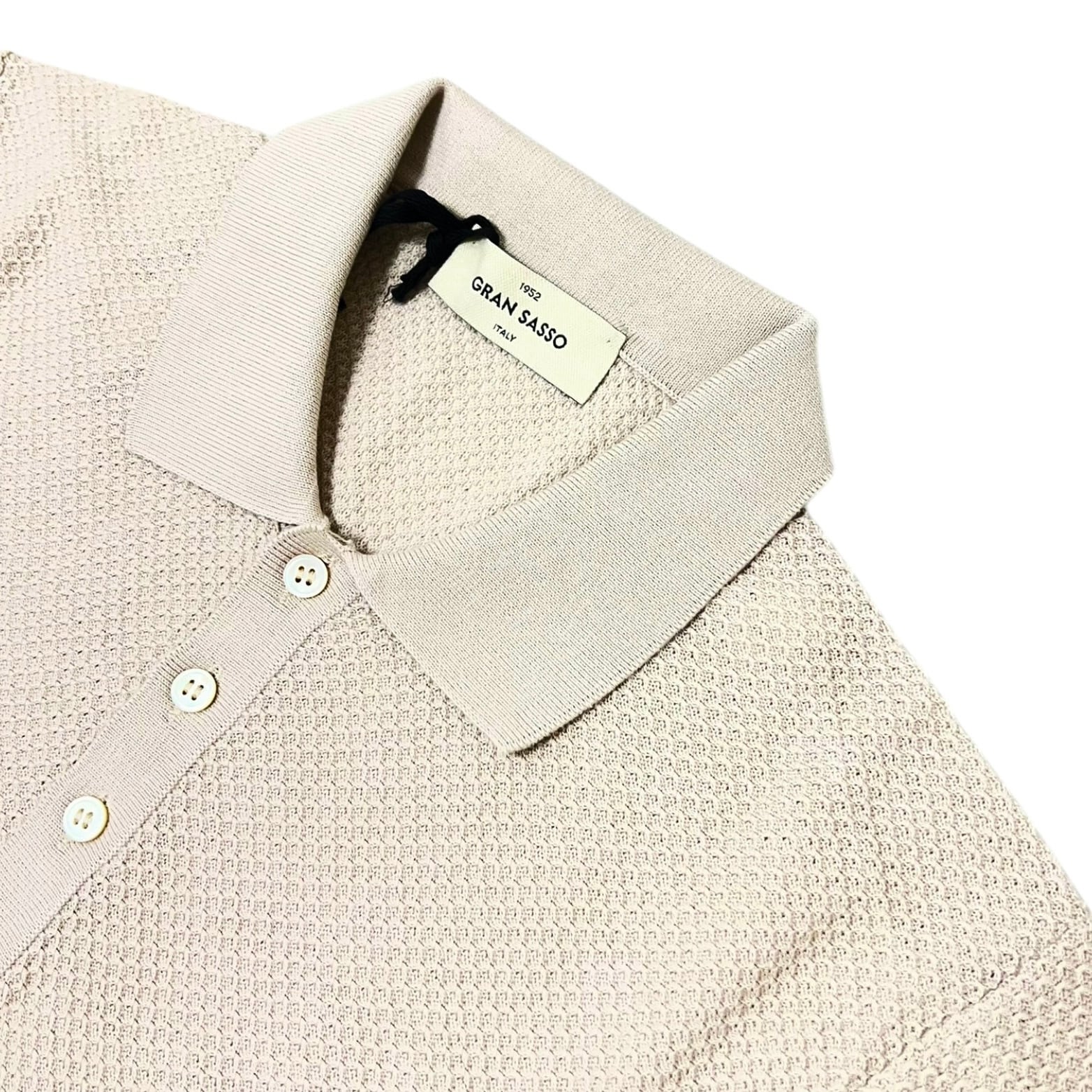 GranSasso(グランサッソ) Jacquard Cotton Knit Polo(57113/18028/012)/LT.BEIGE