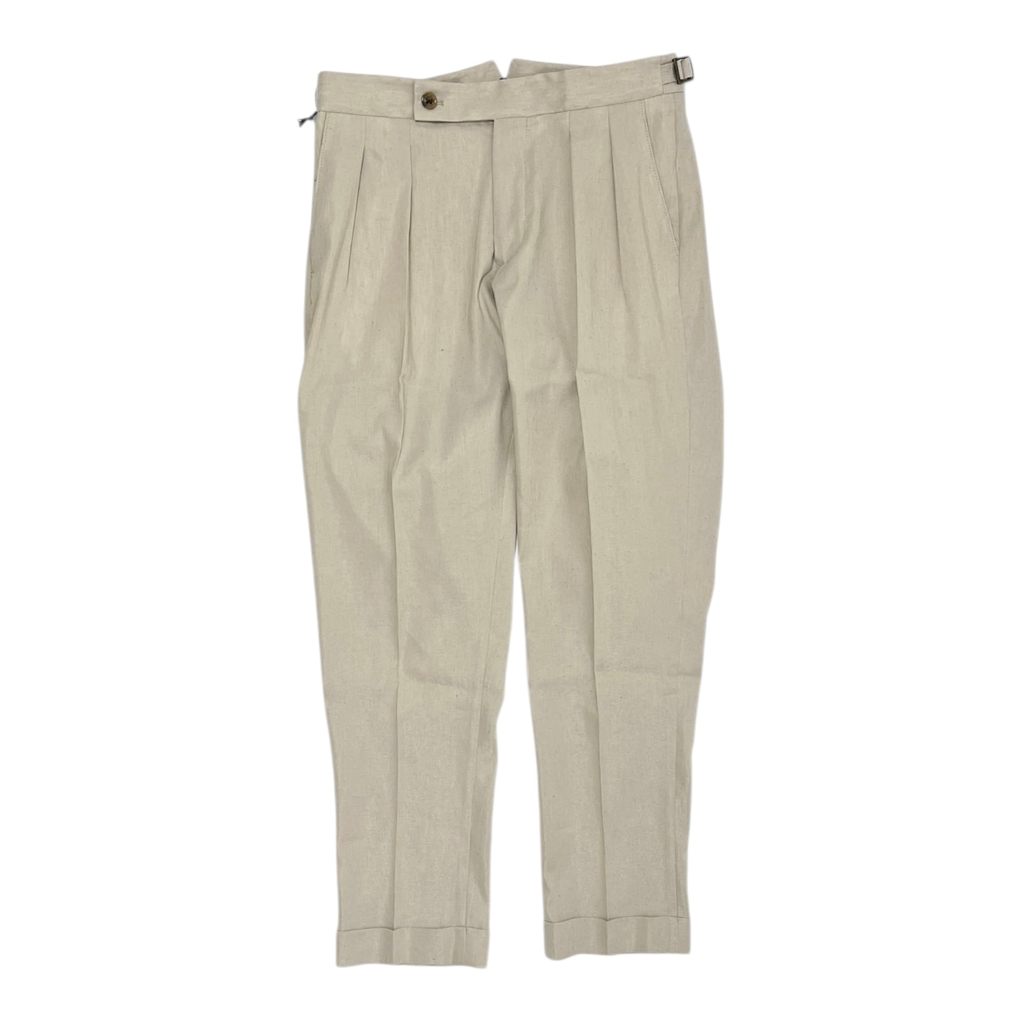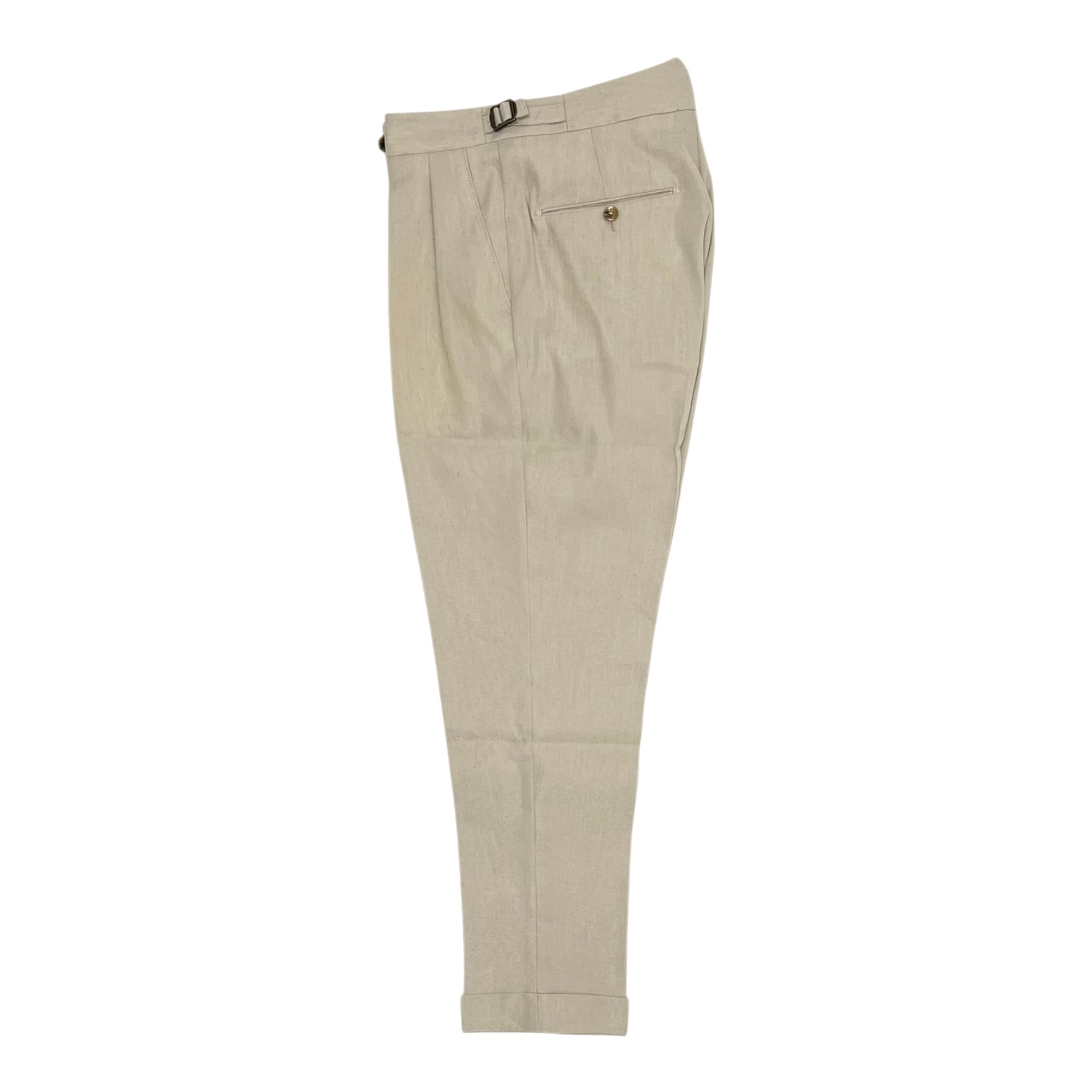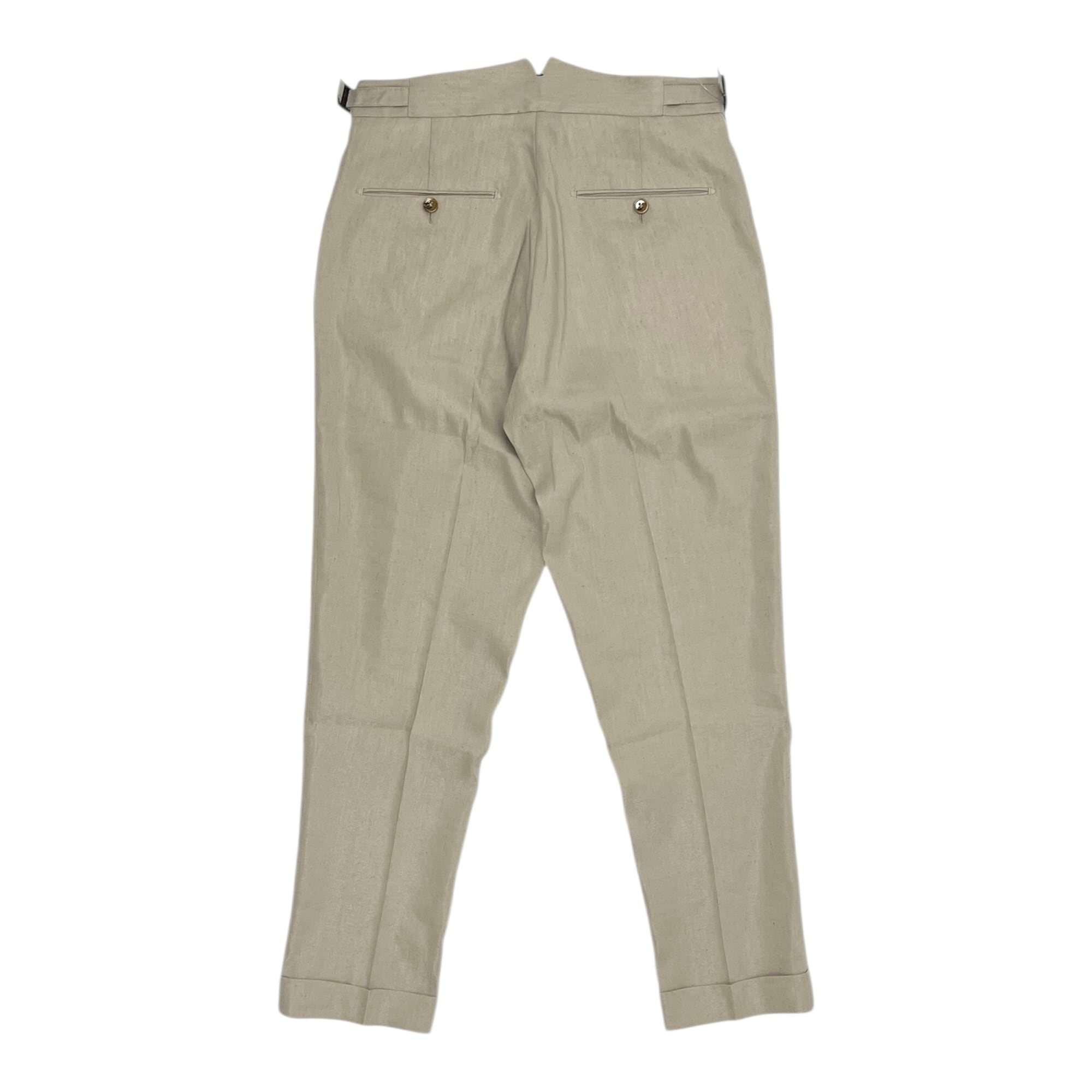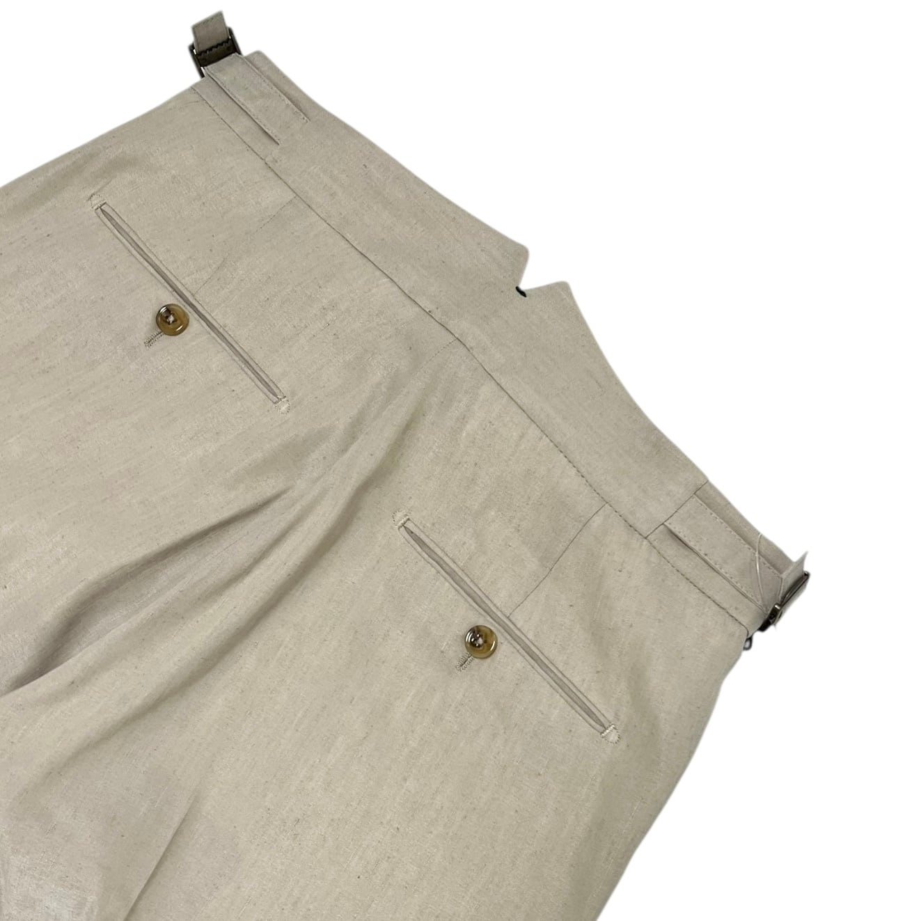 リネンにポリウレタンをブレンドした生地でストレスフリーな履き心地と涼しさを両立した一本です。
