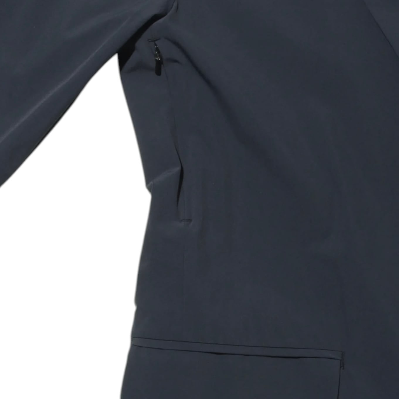 脇のコンシールファスナーを開けるとメッシュの裏打ちが付いていて、風が通るベンチレーション機構により蒸し暑い季節にも好適。
