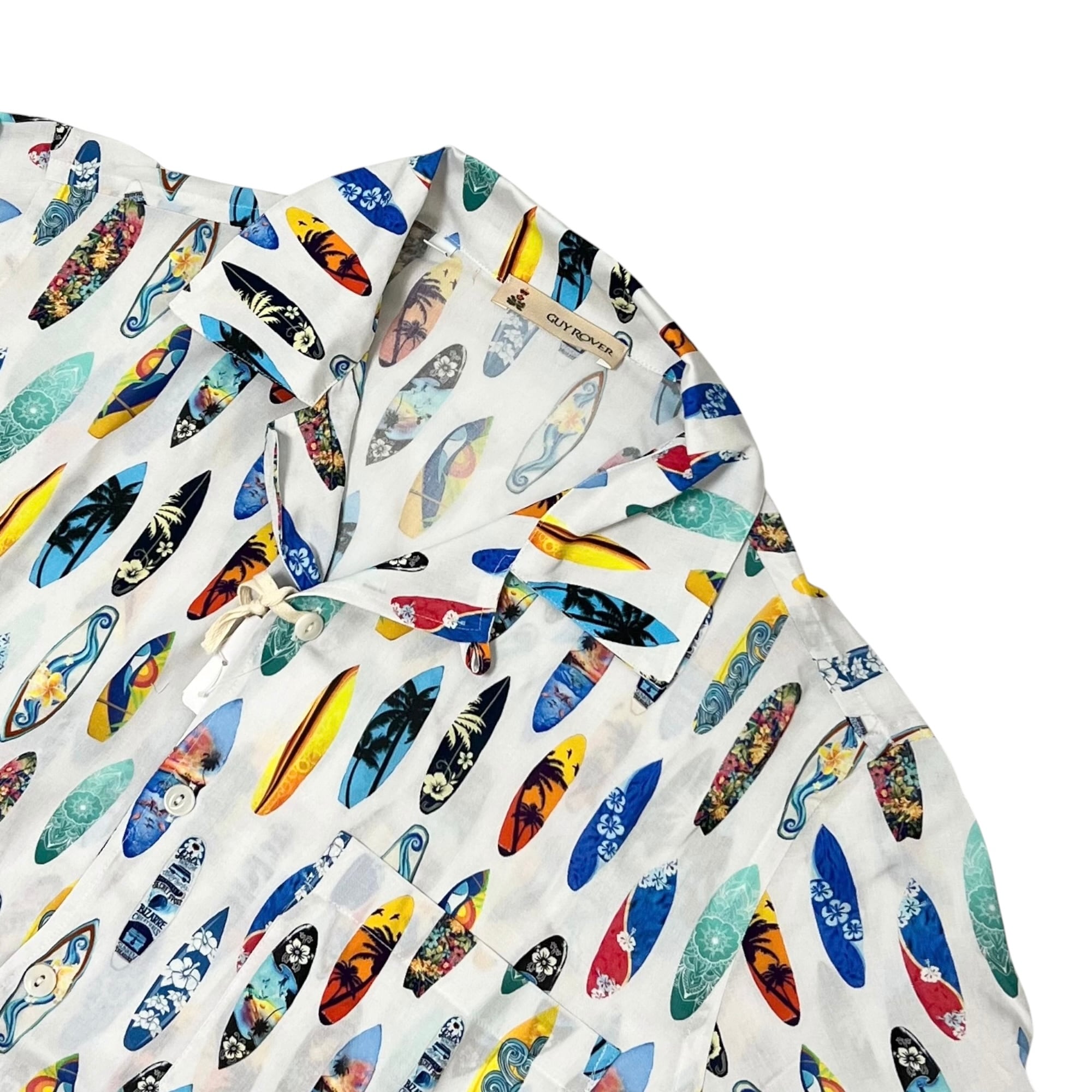 GUYROVER(ギローバー) Surfboard Pattern Viscose Open Collar Shirt(GR352LJ/561292/01)/WHITE
