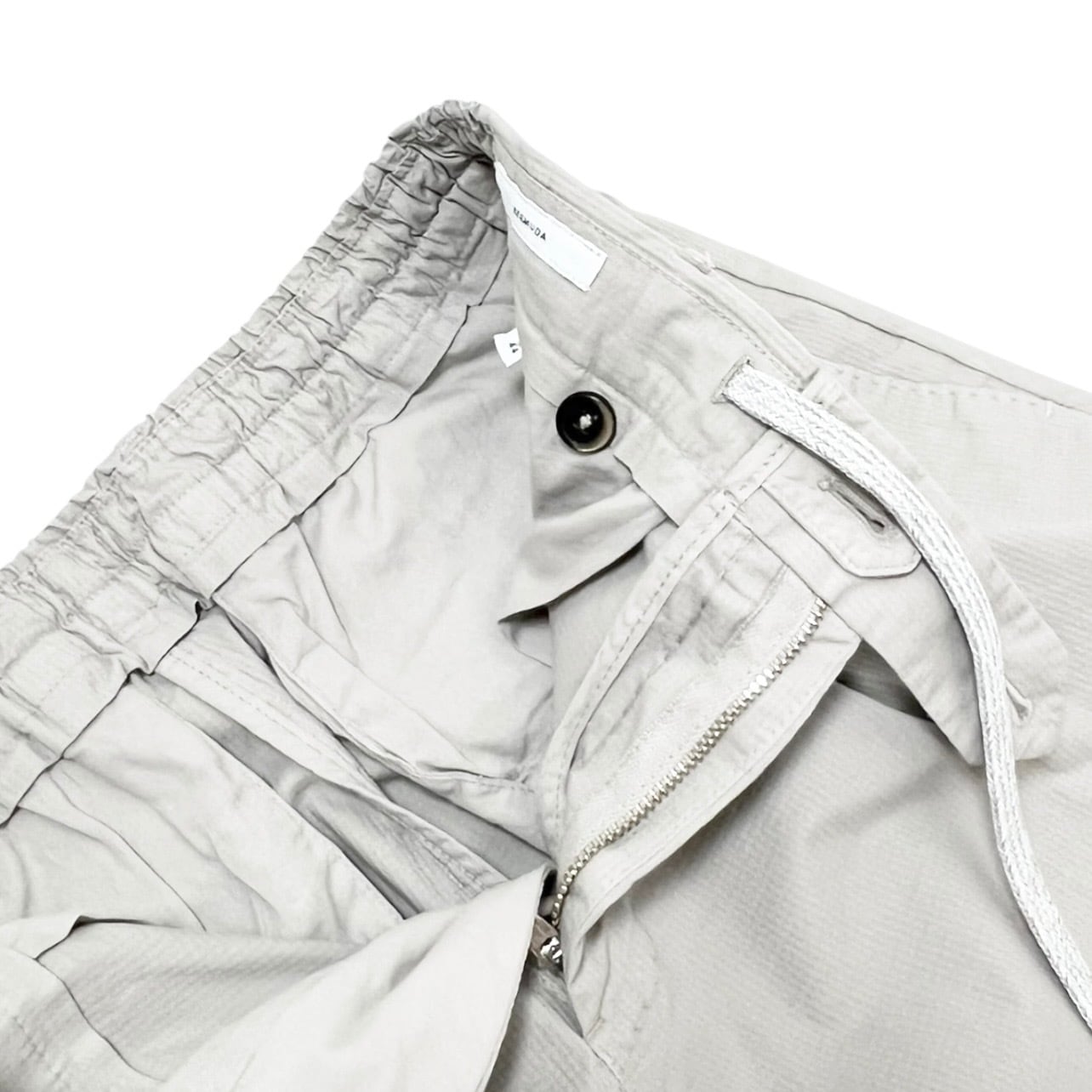 ウエストはゴムシャーリングで内通しドローコード付きのモデル。
