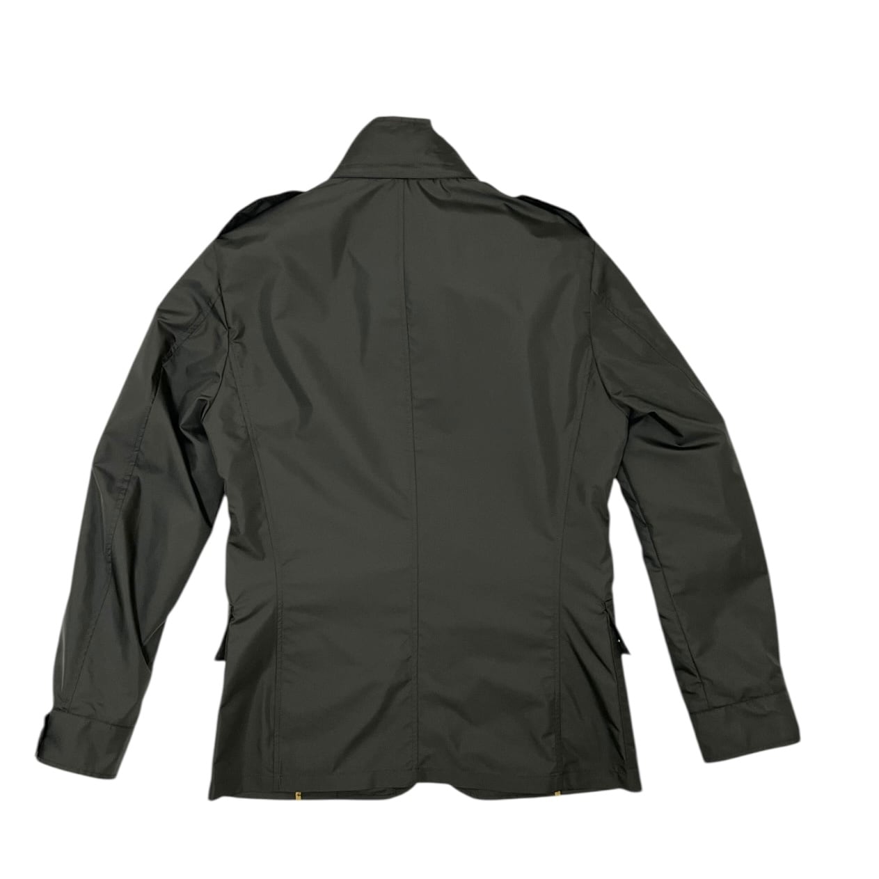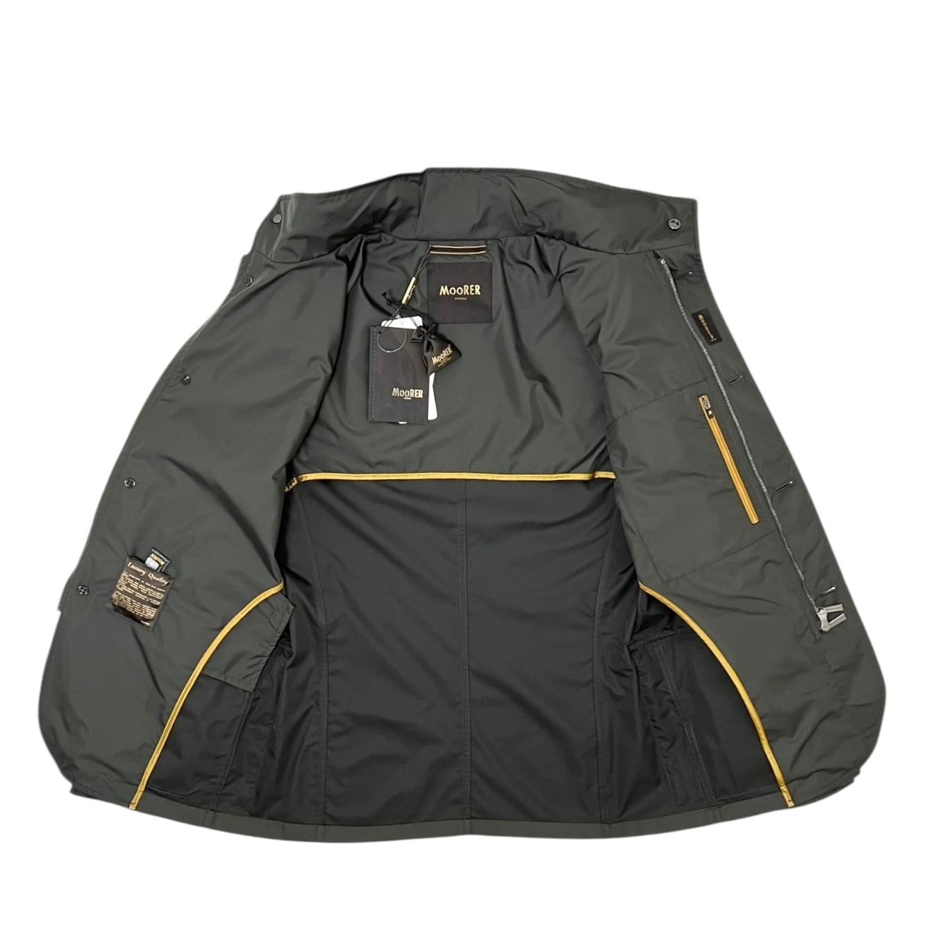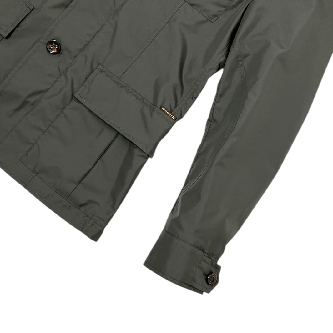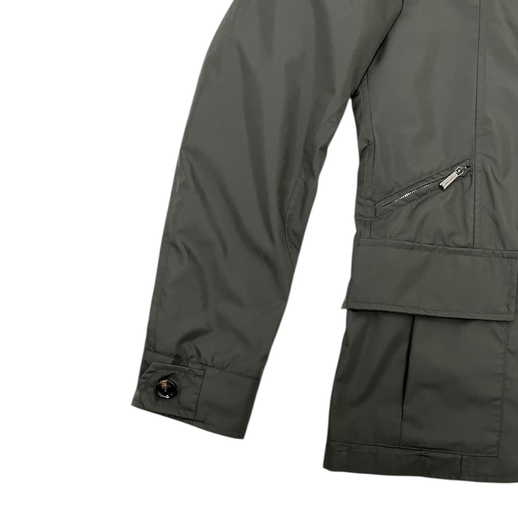 表地には、イタリア高級生地メーカーのカシミアや耐久性、摩耗性、撥水性に富む高密度の織のテクニカル素材を使用し、スナップボタンやファスナー、ホーン釦などには全て特注品を使用。