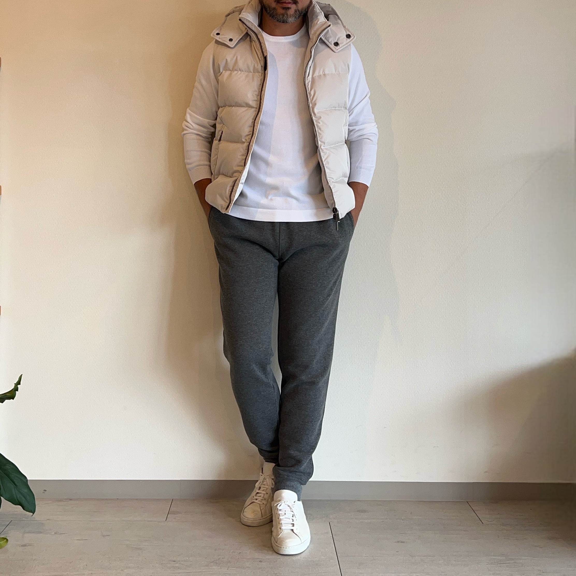 ボリュームを抑えたスッキリとしたシルエットに、着脱可能なフードがスポーティな印象のダウンベスト。